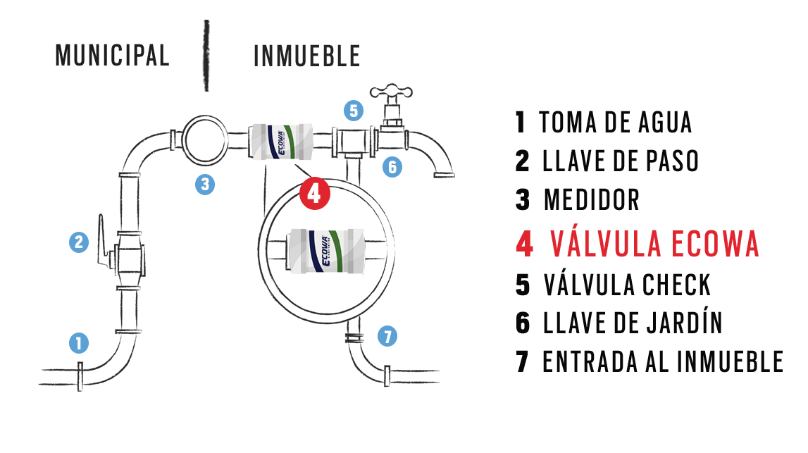 - Instalar después del medidor de agua.